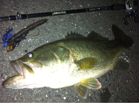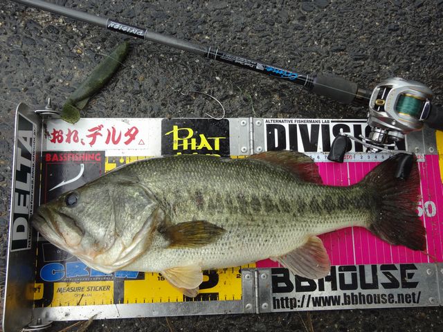 体調が悪いので、実質1時間も投げれなかったのですが、一カ所目の本命エリアで、ウィードの塊の際をトレースし、2投目で釣れてくれました。